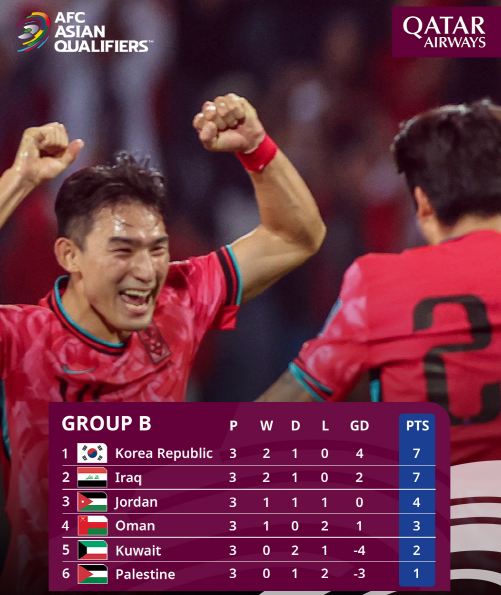이번 경기에서 한국이 승리하면 북중미 월드컵 본선 진출 가능성이 크게 높아집니다. B조에서 이라크와 치열하게 1위 싸움을 벌이고 있는 가운데, 이라크전 승리 시 한국은 조 1위 자리를 더욱 공고히 할 수 있습니다. 3차 예선에서 각 조 2위까지는 본선 직행 티켓을 거머쥘 수 있으며, 그 외의 팀들은 플레이오프를 거쳐야 합니다.