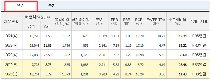 영업이익 측면에서도 2022년 1,796억 원에서 2023년 1,682억 원으로 소폭 감소했지만, 순이익은 2023년 1,120억 원으로 전년 대비 증가하였습니다. 이는 비용 절감 노력과 함께 원재료 가격 안정화가 기여한 것으로 보입니다.