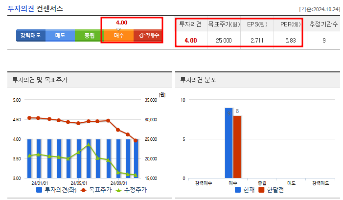 투자자 의견 및 목표 주가
