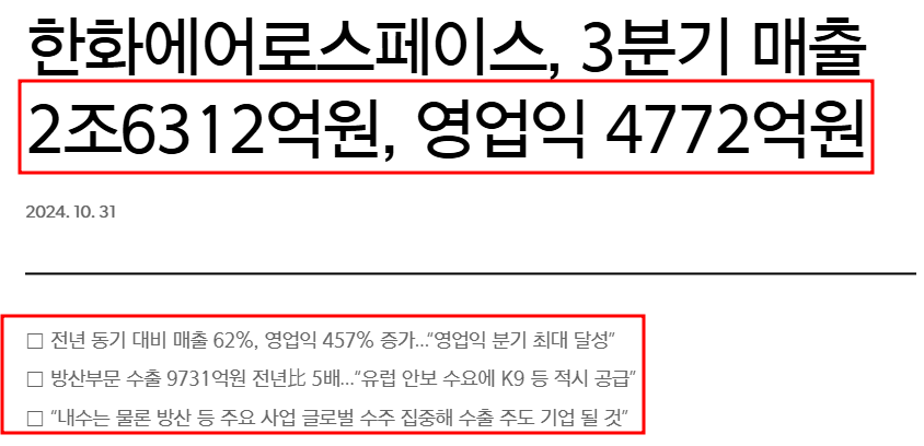 이는 방산 및 항공우주 부문의 수주 증가와 효율적인 비용 관리로 인한 결과로 보입니다.