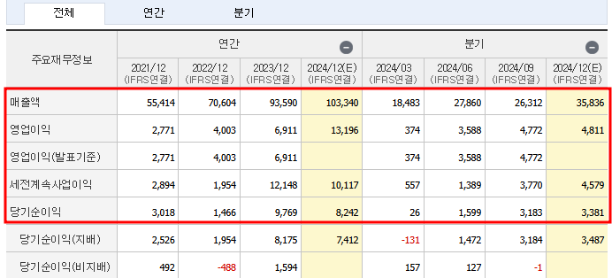 • 2024년 4분기(예상): 매출 3조 5,836억 원, 영업이익 4,811억 원