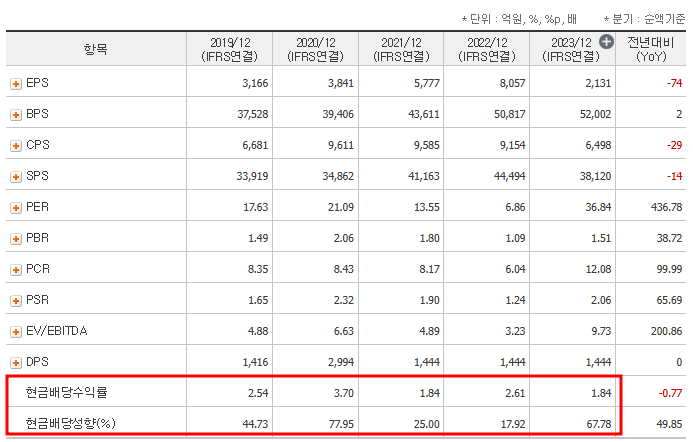 현금배당수익률은 투자자가 안정적인 현금 흐름을 얻을 수 있는지를 판단하는 데 중요한 역할을 합니다. 높은 배당 수익률은 회사가 꾸준한 수익을 창출하고 있다는 신호일 수 있습니다.