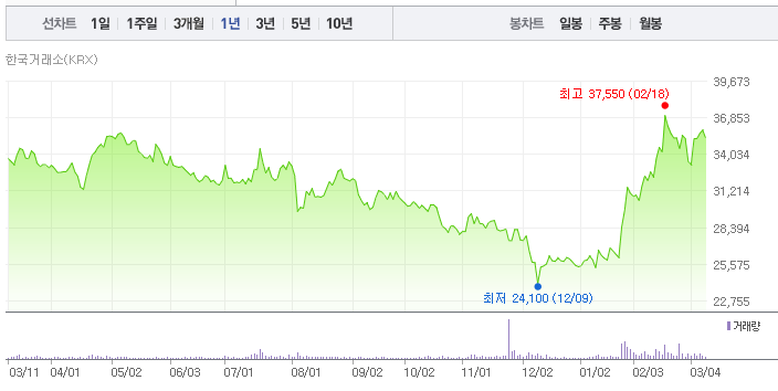 현대건설 주가는 52주 기준으로 작년 12월 9일에 최저가 24,100원을 기록한 후 상승 추세로 돌아서 올해 2월 18일에 최고가인 37,550원을 기록했습니다.