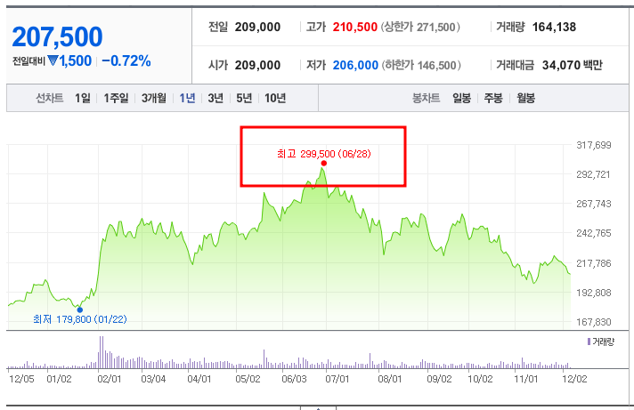 2024년 12월 5일 기준, 현대차의 주가는 207,000원으로 거래되고 있습니다. 이는 글로벌 자동차 시장의 변동성과 전기차 시장에서의 경쟁 심화가 반영된 결과로 보입니다. 최근 몇 년간 현대차의 주가는 안정적인 흐름을 유지하며 투자자들의 신뢰를 받아왔습니다.
