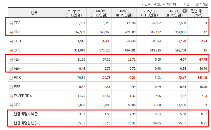 주요 투자 지표 분석(PER PBR 배당금)