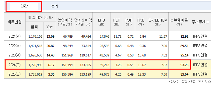 - 2024년 예상 매출: 약 1,726,996억 원으로, 이는 전년 대비 약 6% 성장할 것으로 전망됩니다. 전기차와 친환경 차량의 비중 확대가 매출 성장에 큰 기여를 할 것으로 보이며, 현대차는 이에 따라 생산 라인 확장과 기술 개발에 적극적으로 투자하고 있습니다.