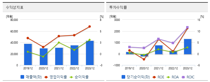 2023년 매출은 43,006억 원으로 전년 대비 22.5% 증가했으며, 영업이익 또한 2,578억 원으로 80% 증가하는 등 성장세가 뚜렷합니다.