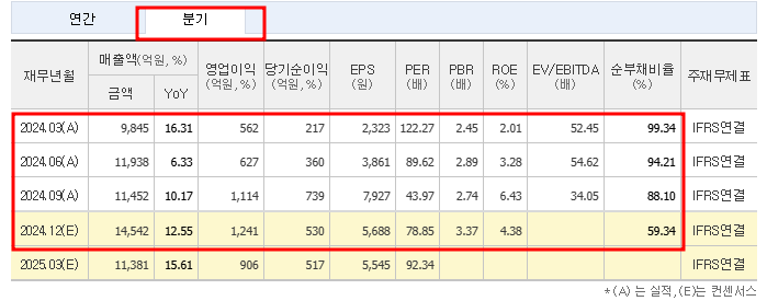 2024년 4분기(E) 14,542 1,241 399