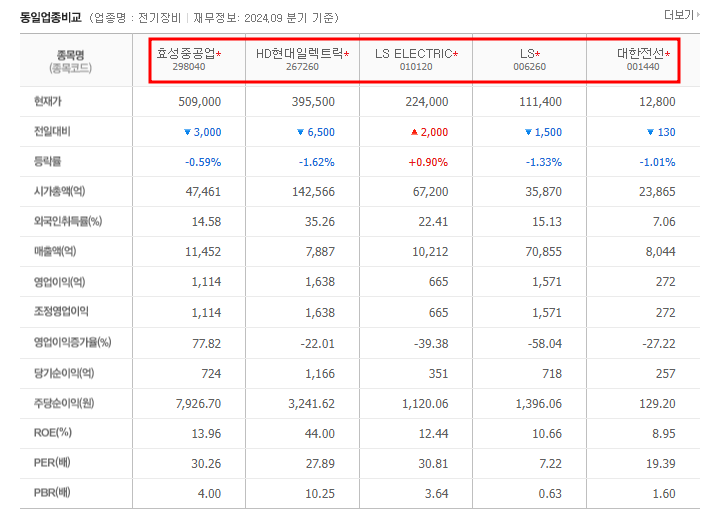 효성중공업의 주요 투자 지표를 살펴보면 다음과 같습니다.