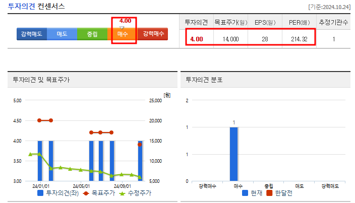 투자자 의견 및 목표 주가