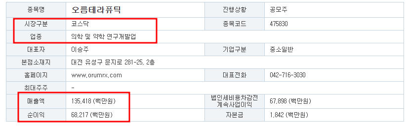 • 업종: 의학 및 약학 연구개발업
