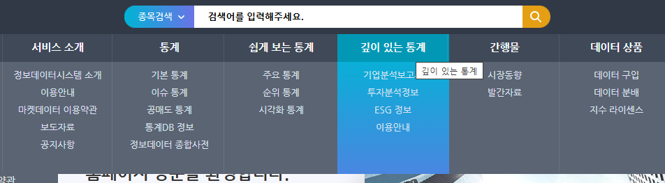 먼저 포털사이트에서 한국거래소 정보데이터시스템을 검색 한 후에 화면에서 다양한 통계 자료를 조회할 수 있습니다.
