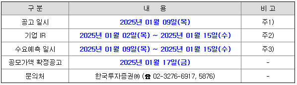 - 공모청약일: 2025년 1월 13일~1월 14일