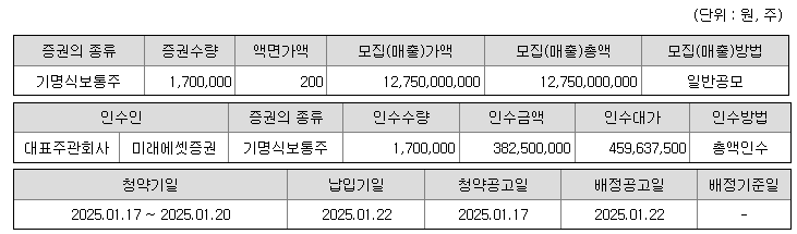 - 공모청약일: 2025년 1월 20일~1월 21일