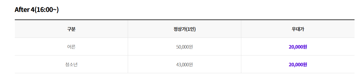- 동반 할인: 수험생 동반 3인까지 1인당 3만원에 입장.