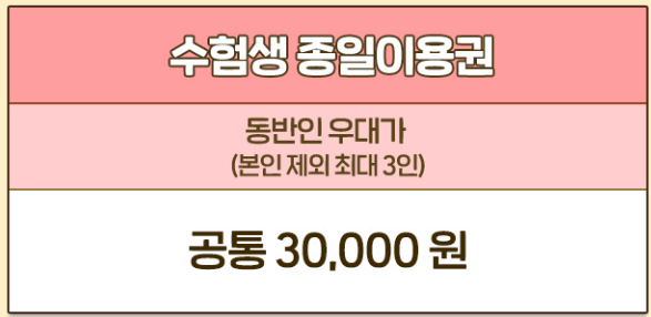 - 입장권: 수험생은 2만1000원에 에버랜드 이용 가능.