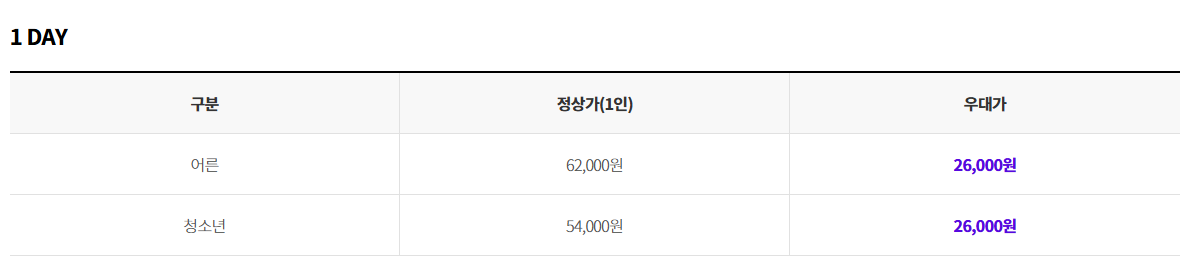 - 어드벤처 부산 & 롯데워터파크: 종일권은 2만원, 오후권(오후 3시 이후 입장)은 1만8000원에 제공.
