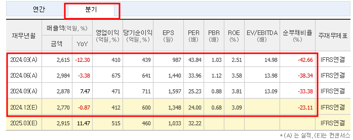 - PER(주가수익비율): 7.37배 (2024년 예상 기준)