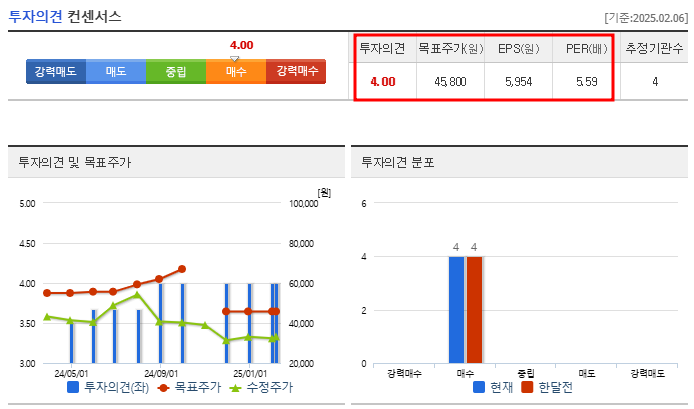 DB하이텍의 목표주가는 2월 6일 기준으로 미래에셋 포함 4개 기관에서 제시한 의견은 4.00매수/목표주가 45,800원으로 제시되고 있습니다.
