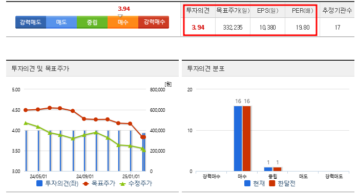 • 투자의견/목표주가: 3.94매수/332,235원