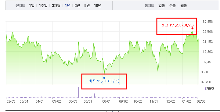 • 52주최고가/최저가: 131,200원/91,700원