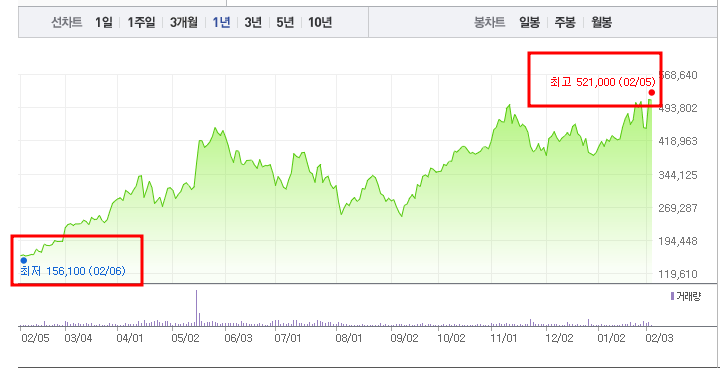 • 52주최고가/최저가: 521,000원/158,500원