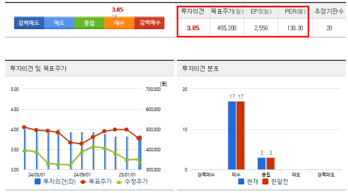 • 투자의견/목표주가: 3.85매수/455,200원