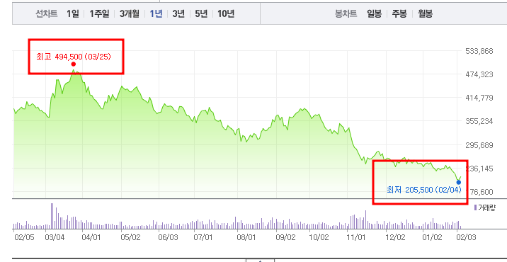 • 52주최고가/최저가:494,500원/205,500원