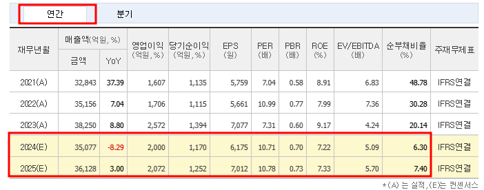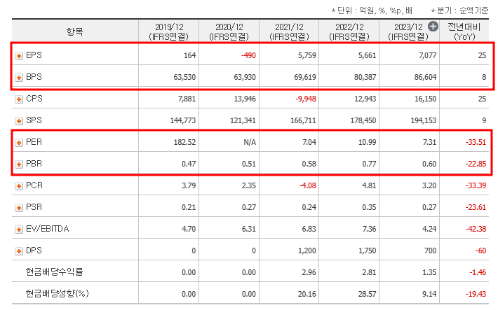 - PBR(주가순자산비율, 2024년 9월 기준): 0.94배