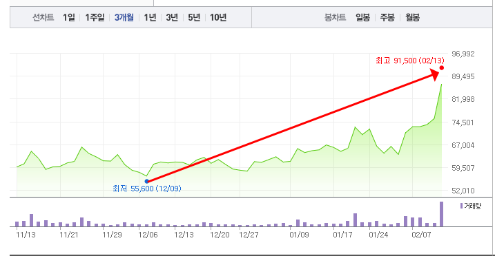 - 52주 최고가: 91,500원