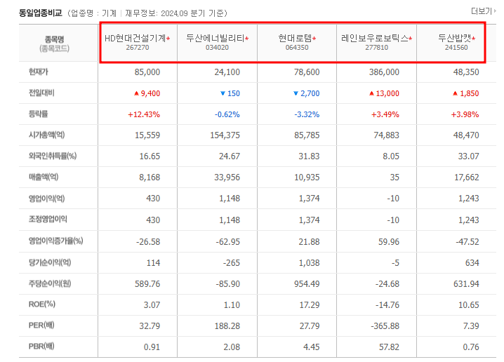 HD현대건설기계의 투자 지표를 살펴보면, 최근 실적 개선과 함께 주가 상승에 따른 밸류에이션 부담이 증가한 상태입니다.