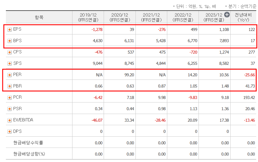 2.3 EPS(주당순이익) 및 BPS(주당순자산)