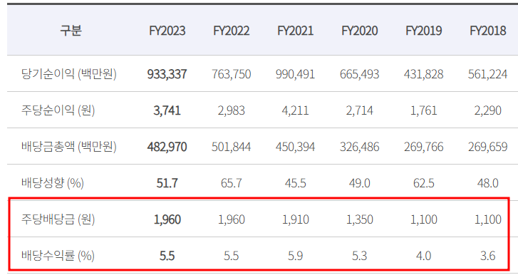 kt 결산 배당 기준일 및 역대 배당금 내역 보기, 출처:kt