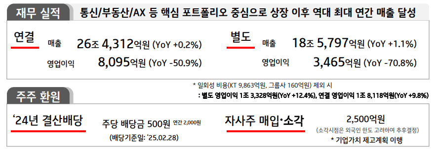 kt 2024년 재무실적 주주환원 정책, 출처:kt