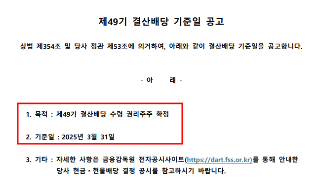 • 배당을 받기 위해서는 배당 기준일(2024년 12월 31일) 전에 주식을 보유해야 합니다.