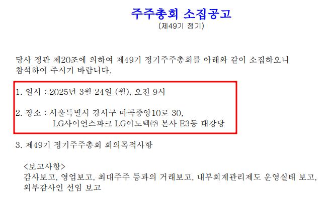 LG이노텍 주주총회 소집공고