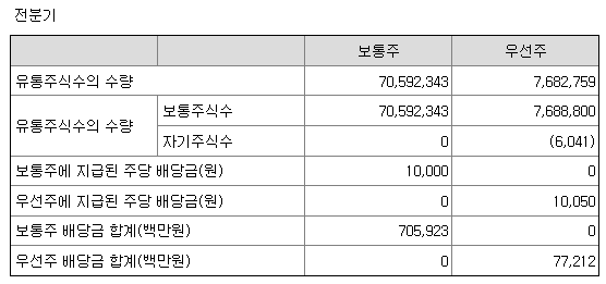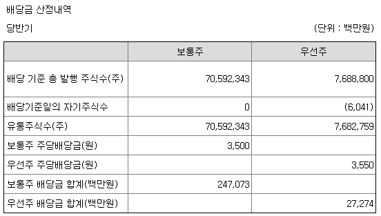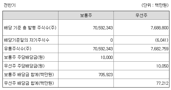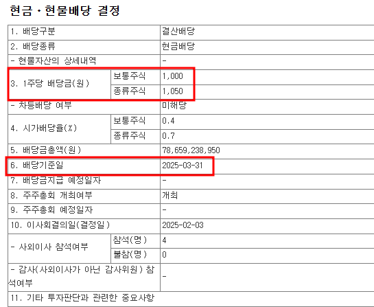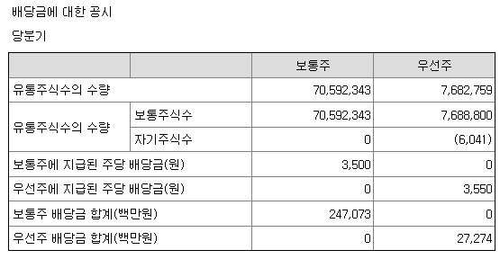 | 1주당 배당금 | 보통주 1,000원 / 종류주 1,050원 |