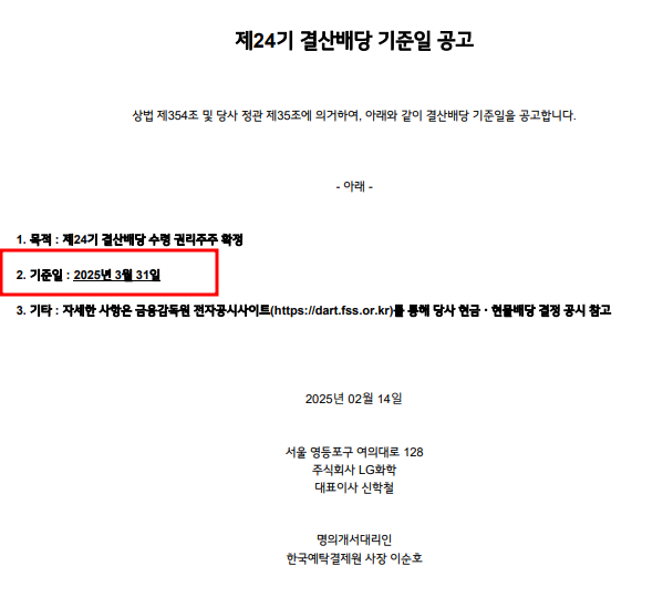 2. LG화학 배당금 지급일 기준일