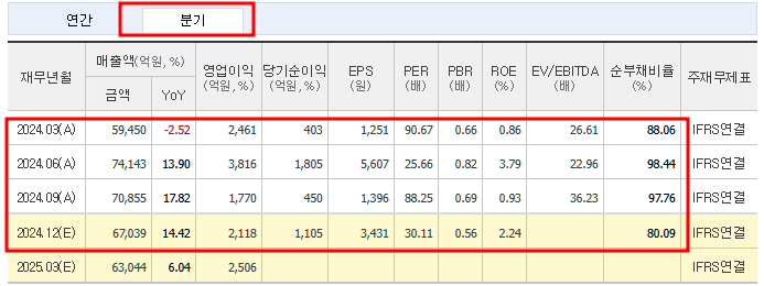 - PBR(주가순자산비율, 2024.09): 0.62배