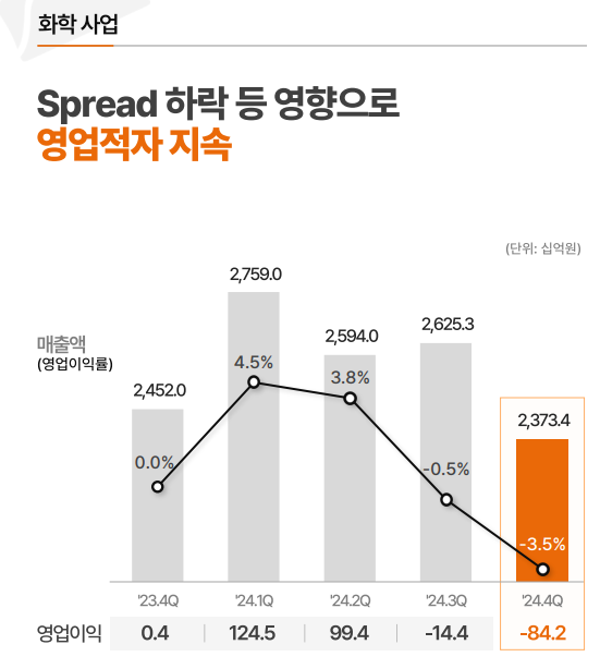 반면 화학사업과 소재사업은 주요 제품 스프레드 하락 및 재고 관련 비용 증가로 인해 각각 영업손실을 기록했습니다. 특히 배터리사업은 판매 물량 증대로 매출액 증가에도 불구하고 일회성 비용 발생 등의 영향으로 적자로 돌아섰습니다.