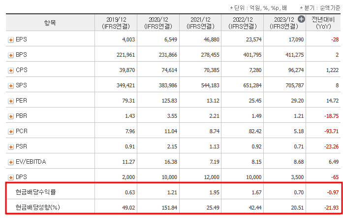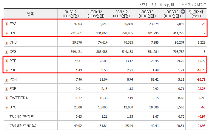 LG화학의 주요 투자 지표를 살펴보면 다음과 같습니다.