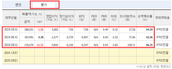 - PER: -118.57배로, 2024년 예상 실적을 기준으로 적자가 지속될 전망입니다.
