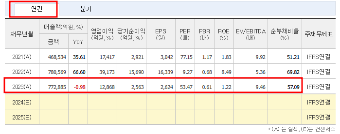 - 2023년 매출: 77조 2,885억 원, 영업이익 1조 2,868억 원, 당기순이익 2,562억 원.