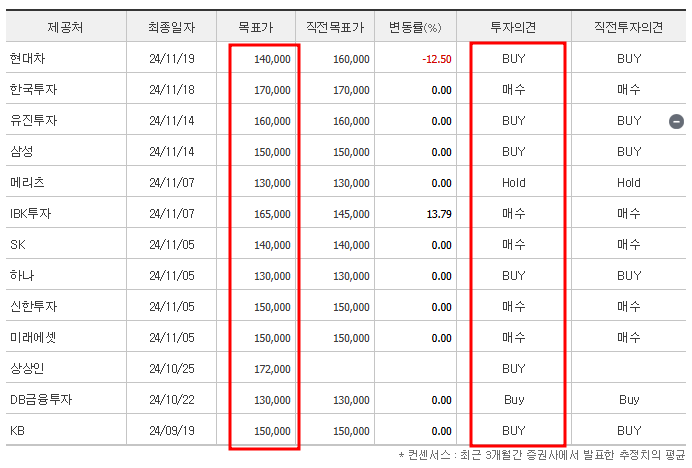 - 목표 주가: 증권사 평균 160,000원으로, 현재 주가 대비 약 35.8%의 상승 여력이 존재합니다.